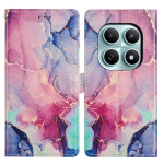 Capa elegante com padrão de mármore rosa e verde para Xiaomi Redmi Note 15 5G. Design tudo-em-um com 2 ranhuras para cartões, 1 bolso para fotografias e compartimento lateral. Suporte integrado para visualização em mãos-livres e alça de mão amovível incluída.