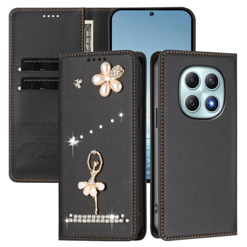 Proteja o seu smartphone com estilo com esta capa de carteira em pele PU de alta qualidade. Com proteção RFID, um design de bailarina embelezado com strass, 2 ranhuras para cartões e uma função de suporte ajustável para uma experiência de mãos livres.