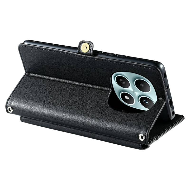 Étui portefeuille multifonction avec dragonne et support pour Xiaomi Redmi Note 15 5G / Poco M8 5G. Conception élégante avec 3 emplacements pour cartes, 1 compartiment pour espèces et support de visionnage réglable. Protection intégrale contre les rayures.