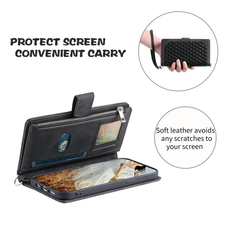 Étui portefeuille élégant avec motif losange cousu pour votre Xiaomi Redmi Note 15 5G / Poco M8 5G. Conception multifonctionnelle avec emplacements pour cartes, poche zippée et support mains libres. Fermeture magnétique sécurisée et dragonne pratique incluse pour un transport facile.