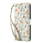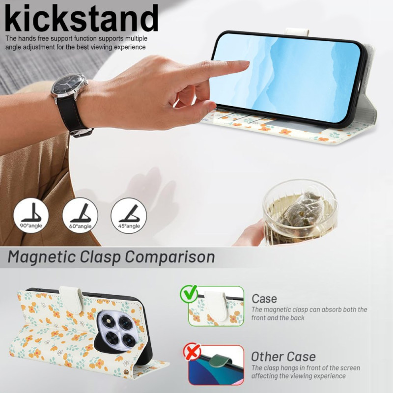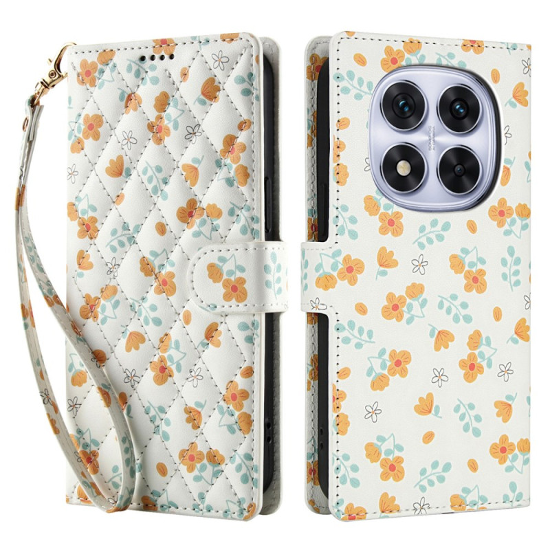Capa elegante para carteira para o Xiaomi Redmi Note 15 Pro 4G que oferece proteção total. Design sofisticado com motivos florais e costuras de diamante. Inclui várias ranhuras para cartões, suporte ajustável e uma prática correia de mão.
