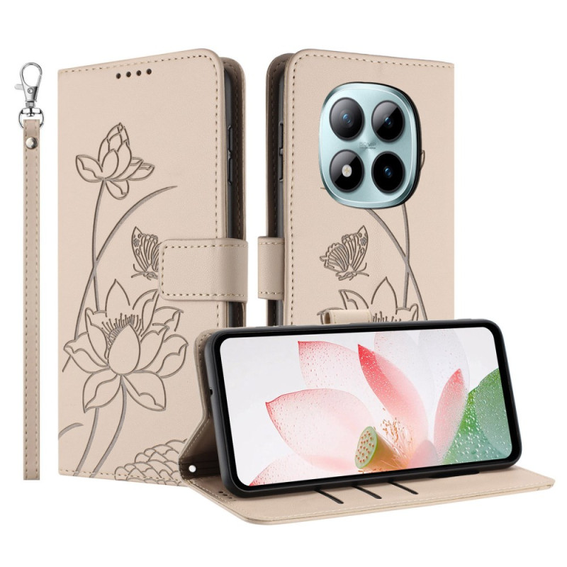 Descubra esta elegante capa de couro sintético para carteira para o Xiaomi Redmi Note 15 Pro 4G. Com um requintado motivo de lótus, oferece ranhuras para cartões, suporte mãos-livres integrado e uma correia de pulso amovível para um transporte fácil e seguro.