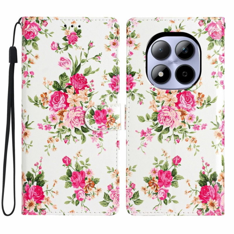 Descubra este elegante capa de carteira com motivos florais vermelhos para o seu Xiaomi Redmi Note 15 Pro 5G. Com 3 compartimentos para cartões, um bolso para dinheiro e uma prática correia de pulso, combina estilo e funcionalidade.