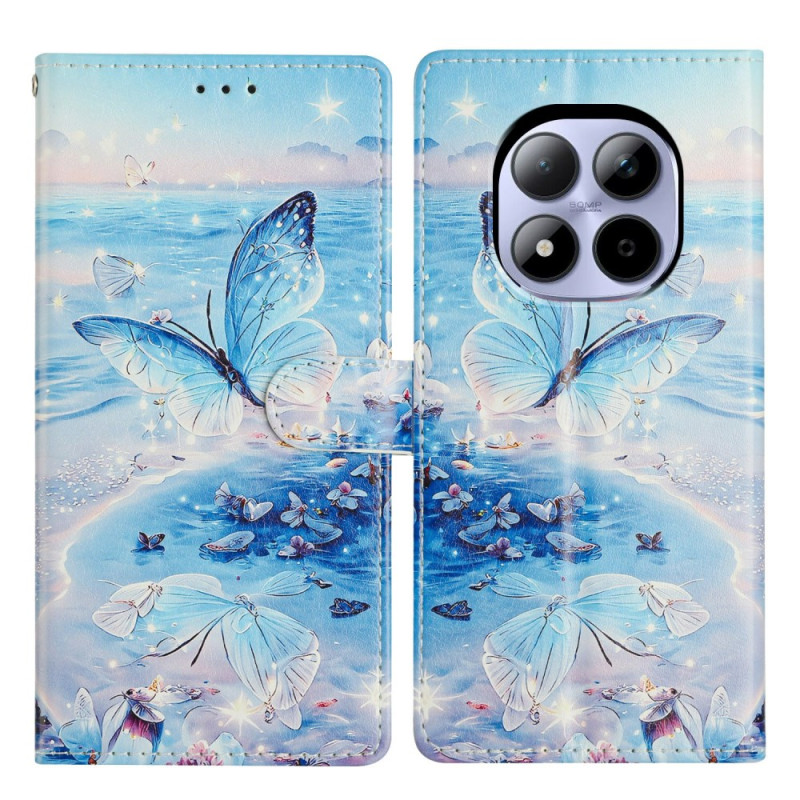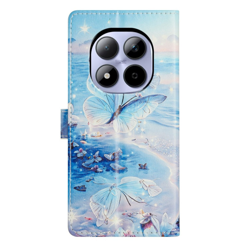 Proteja o seu Xiaomi Redmi Note 15 Pro 5G com estilo com esta elegante capa para carteira. Com ranhuras para cartões, um suporte dobrável e uma alça de mão amovível, combina funcionalidade com um design requintado com um motivo de borboleta do oceano.