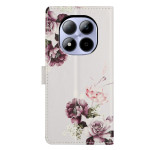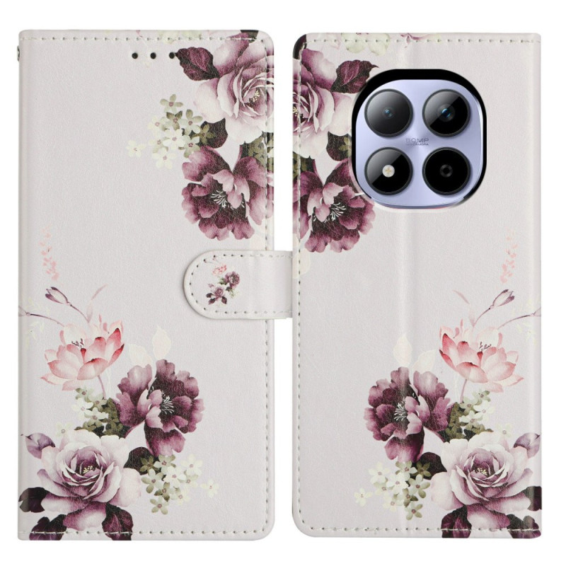 Capa com aba elegante com design de cruz cor-de-rosa para Xiaomi Redmi Note 15 Pro 5G. Design de carteira tudo-em-um com 2 ranhuras para cartões, 1 bolso para fotografias e compartimento lateral. Suporte dobrável integrado para uma visualização em mãos-livres. Inclui uma correia de pulso amovível.