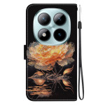 Capa elegante para carteira com impressão de peónia dourada para o seu Xiaomi Redmi Note 15 Pro 5G. Design requintado com aba e função de suporte, ranhuras para cartões e alça de mão prática. Proteção completa que combina estilo e funcionalidade.