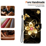 Proteja o seu smartphone com estilo com esta capa para carteira com aba e motivos florais dourados. Com compartimentos para cartões, um suporte de visualização e um fecho magnético seguro, combina estilo e funcionalidade.