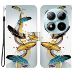 Descubra a nossa elegante capa com aba para carteira para o Xiaomi Redmi Note 15 Pro 5G. Adornada com um deslumbrante padrão dourado de penas de borboleta, esta capa combina estilo e funcionalidade com as suas ranhuras para cartões, suporte integrado e cordão amovível para facilitar o transporte.