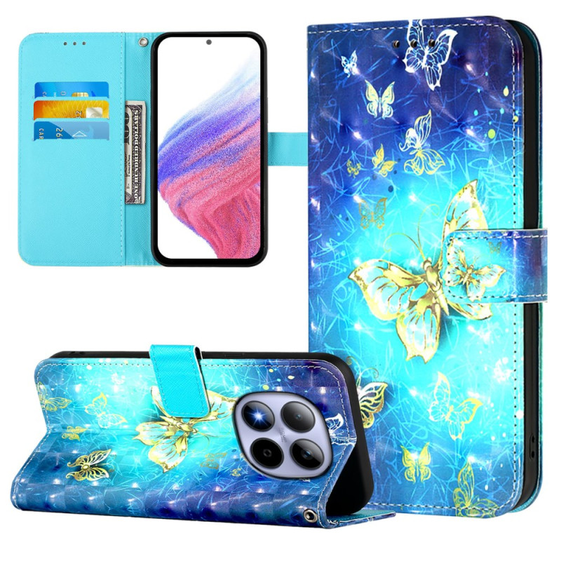 Proteja o seu Xiaomi Redmi Note 15 Pro 5G com estilo com esta capa para carteira com um motivo de borboleta dourada. Design multifuncional com 3 ranhuras para cartões, 1 bolso para dinheiro e suporte ajustável para uma experiência de mãos livres.