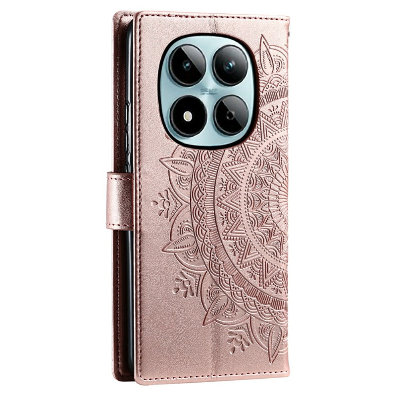 Proteja o seu Xiaomi Redmi Note 15 Pro 5G com estilo com esta capa para carteira em pele PU. Com um bonito motivo de mandala impresso, combina estilo e funcionalidade com o seu suporte ajustável, ranhuras para cartões e uma prática alça de mão.
