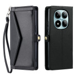 Capa de carteira elegante para Xiaomi Redmi Note 15 Pro 5G. Design multifuncional com 3 ranhuras para cartões, compartimento para bilhetes e uma prática correia de pulso. Suporte dobrável para uma visualização em mãos-livres. Proteção total contra riscos e choques.