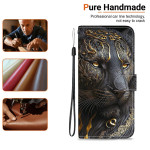 Proteja o seu Xiaomi Redmi Note 15 Pro Plus 5G com estilo com esta capa para carteira em pele sintética de alta qualidade. Design sofisticado de leão preto e dourado, suporte dobrável integrado, fecho magnético seguro e alça de mão amovível.