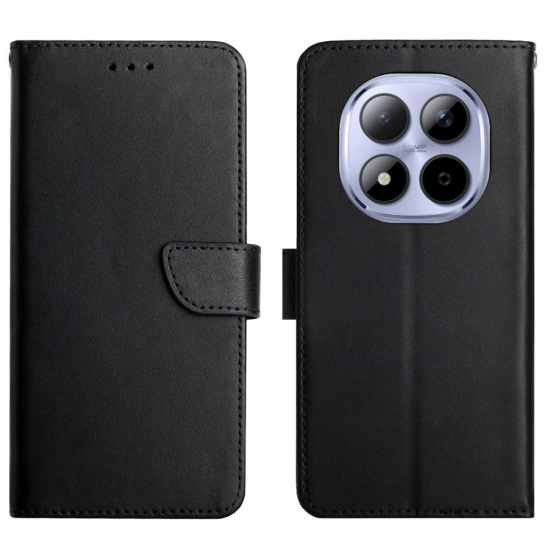 Capa para carteira 2 em 1 em pele de vaca genuína com uma luxuosa textura Nappa para o Xiaomi Redmi Note 15 Pro+ 5G. Combina elegância e proteção com ranhuras para cartões, suporte ajustável e fecho magnético seguro.