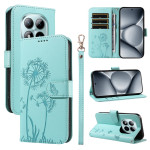Capa elegante em pele PU de primeira qualidade para Xiaomi Redmi Note 15 Pro Plus 5G. Design requintado com motivo de dente-de-leão impresso, 3 compartimentos para cartões, compartimento lateral e alça de mão incluída. Função de suporte integrada.