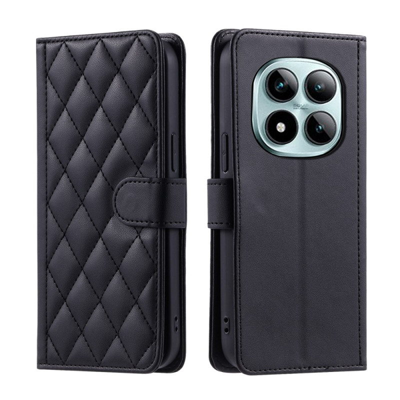 Étui portefeuille élégant avec motif losange pour votre Xiaomi Redmi Note 15 Pro Plus 5G / Poco M8 Pro 5G. Doté de multiples poches pour cartes, d'un compartiment pour monnaie et de sangles pratiques (poignet et épaule 145cm).