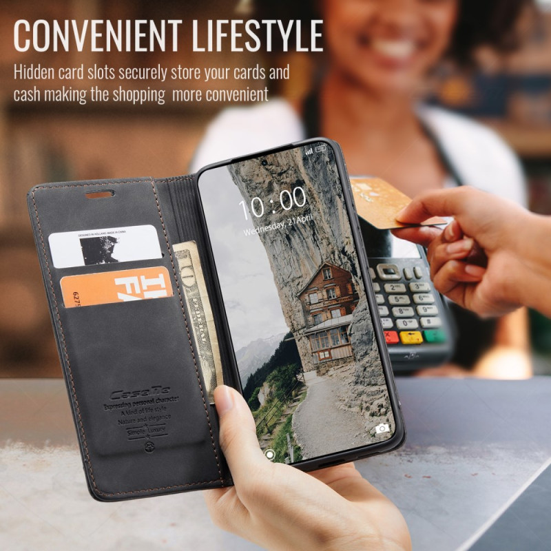 Étui portefeuille élégant en cuir PU avec texture rétro raffinée. Doté de 2 emplacements pour cartes et d'un compartiment pour billets, il combine style et praticité. Support pliable réglable pour un visionnage confortable et fermeture magnétique sécurisée.