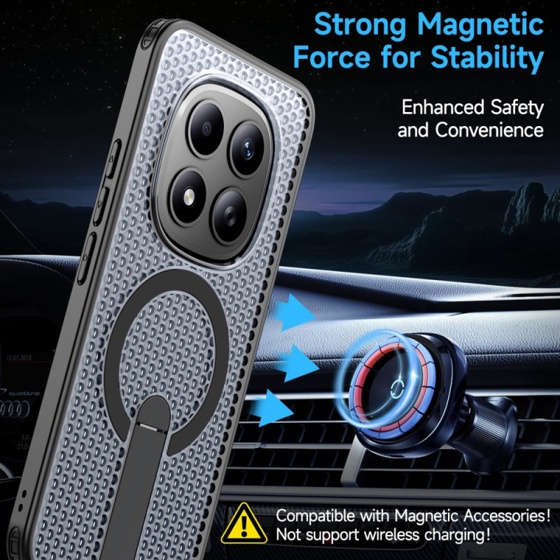 Protégez votre Xiaomi Redmi Note 15 Pro Plus 5G / Poco M8 Pro 5G avec style grâce à cette coque magnétique à texture quadrillée. Dotée d'une béquille intégrée pliable et d'un anneau magnétique compatible avec les accessoires de charge sans fil, elle offre une protection renforcée.
